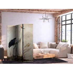 Sermi - By an Asian pond - an illustration in the style of a Japanese engraving, depicting a heron