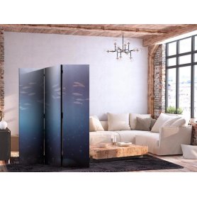 Sermi - Underwater School of Small Fish - Tiny Light-Beige Fishes Against Marine Depths in Grey Shades
