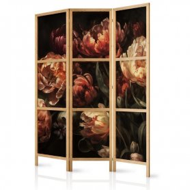 Japanilainen sermi - Magnificent Tulips - Bouquet of Flowers in Red and White on a Black Background