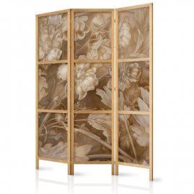 Japanilainen sermi - Floral Ornaments Carved in Delicate Sepia and Brown Shades