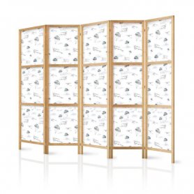 Japanilainen sermi - Fairy-Tale Moon - Moon with balloons among clouds and stars in subdued colors on a light beige back