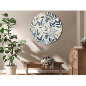 Pyöreä taulu - Leaves in Blue Colors Delicate Botanical Motif