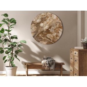 Pyöreä taulu - Floral Ornaments Carved in Delicate Sepia and Brown Shades