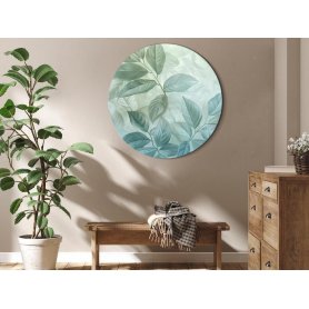 Pyöreä taulu - Large Leaves in Shades of Green-Mint: Botanical Motif