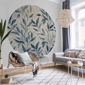 Pyöreä seinämaalaus - Delicate botanical motif with blue leaves