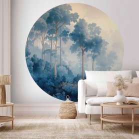 Pyöreä seinämaalaus - A forest in misty shades of blue
