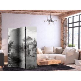 Sermi - Black and White Vintage Landscape - Retro View of a Pond with a Boat